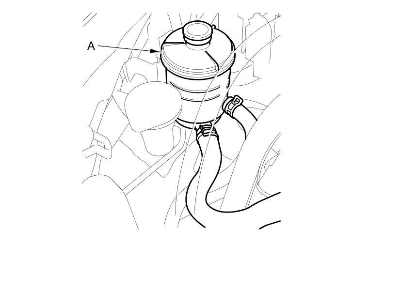 1. Check the reservoir (A) at regular intervals, and add the recommended fluid as necessary. Always use Honda Power Steering Fluid. Using any other type of power steering fluid or automatic transmission fluid can cause increased wear, fluid leaks, and poor steering in cold weather.