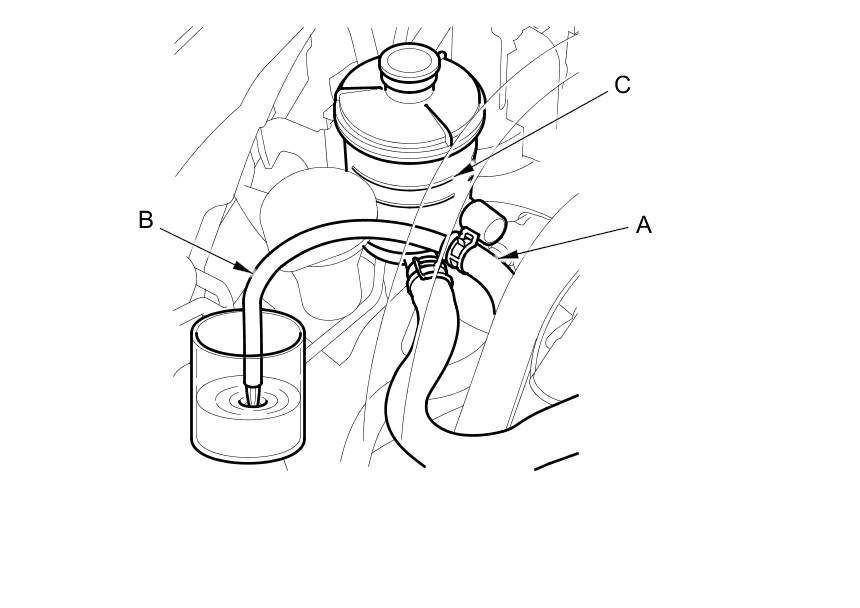 NOTE: Stop the engine immediately once the fluid stops running out of the hose to prevent pump damage.