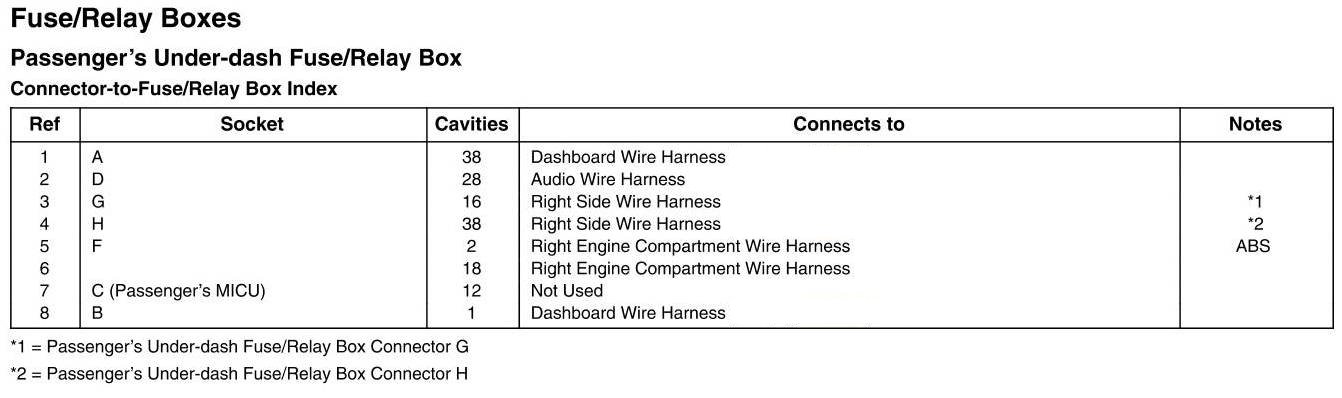 Passenger's Under-dash Fuse/Relay Box - Connector-to-Fuse/Relay Box Index