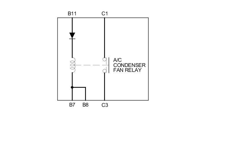 There should be continuity between terminals C1 and C3 when battery power is connected to terminal B11, and battery ground is connected to terminal B7 (or B8). There should be no continuity between terminals C1 and C3 when power is disconnected.