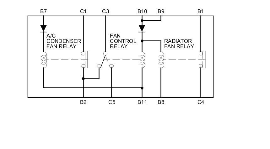 Radiator fan relay, Fan control relay, A/C condenser fan relay