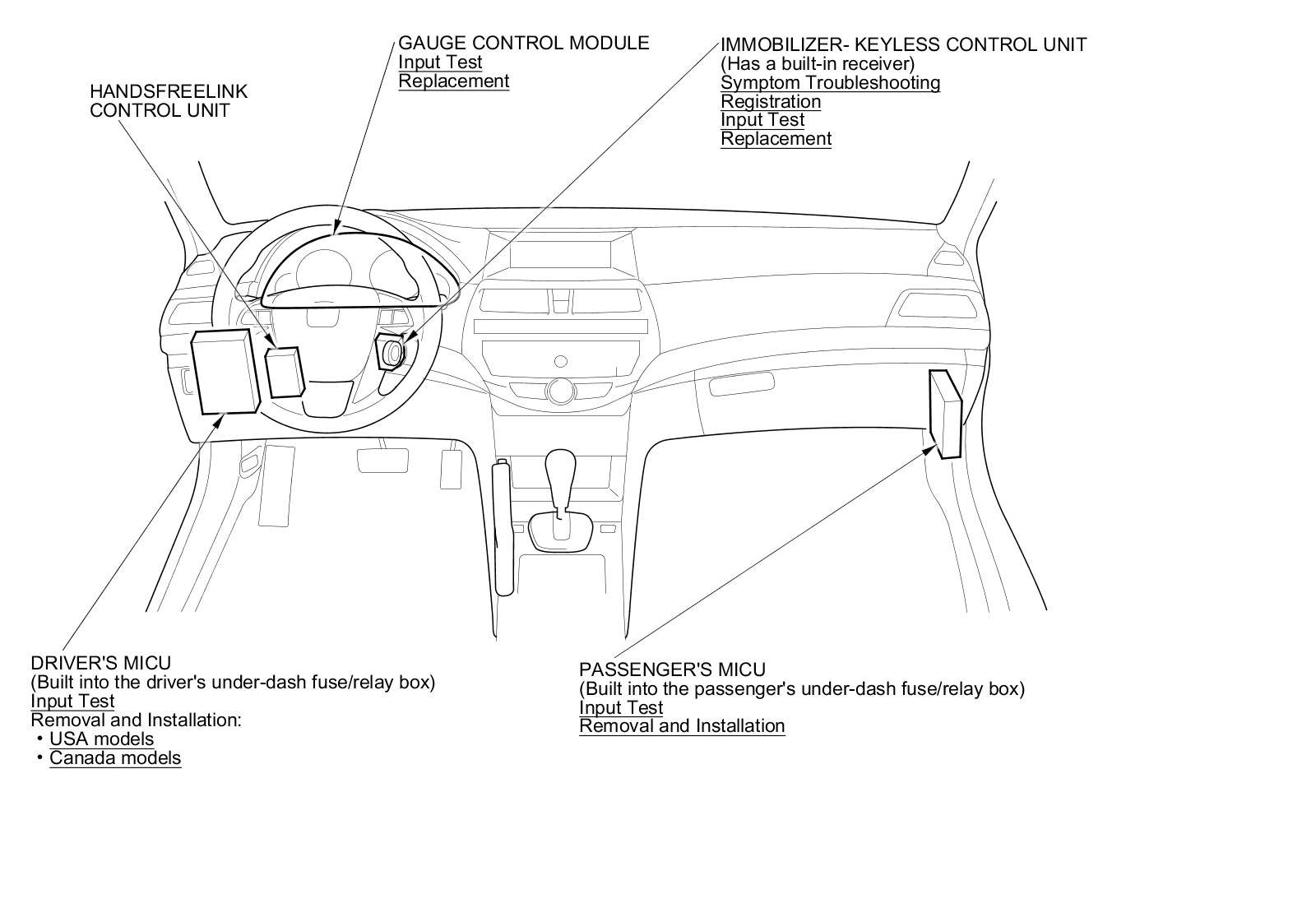 Multiplex Integrated Control System Component Location Index