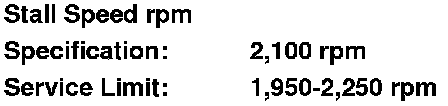 9. If any of the stall speeds are out of the service limit, refer to the problems and probable causes listed in the table.