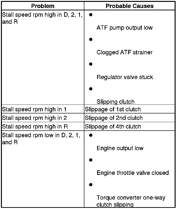 - Stall speed test results should be the same in D, 2, 1, and R.