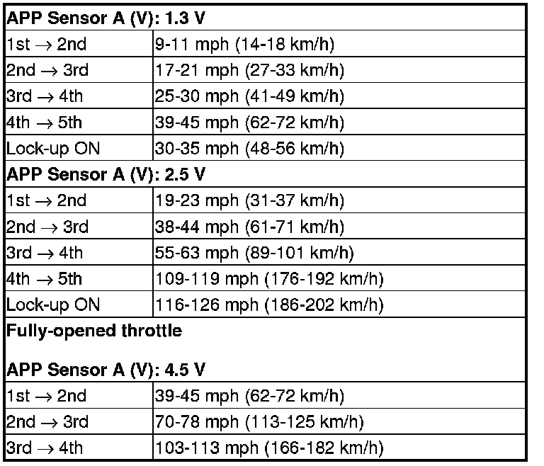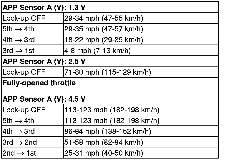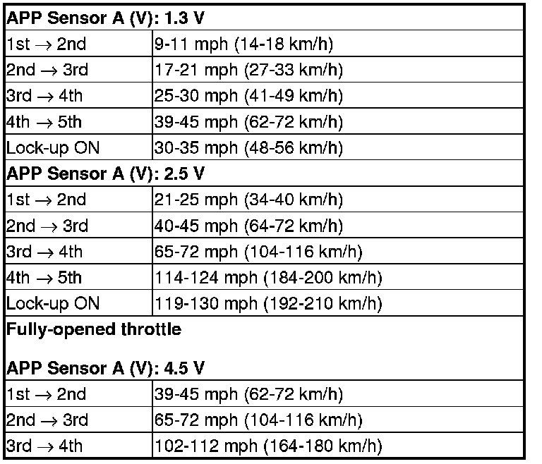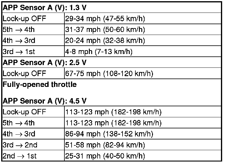 8. Accelerate quickly until APP Sensor A reads 1.3 V. Maintain a steady throttle until the transmission shifts to 5th gear, then slow the vehicle and come to a stop.