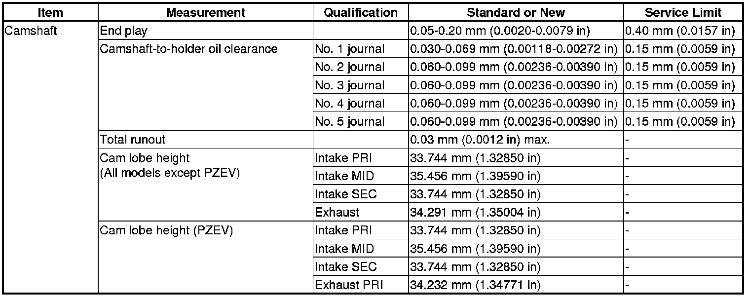 Camshaft Specification(s)