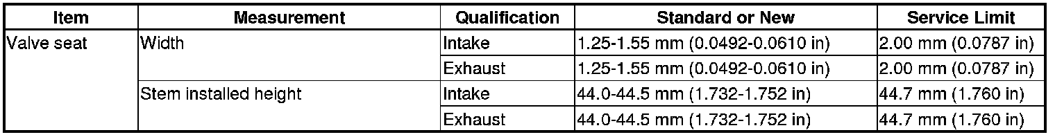Valve Seat Specification(s)