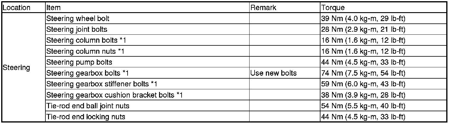 *Refer to each S/M section for the bolts/nuts not indicated here.