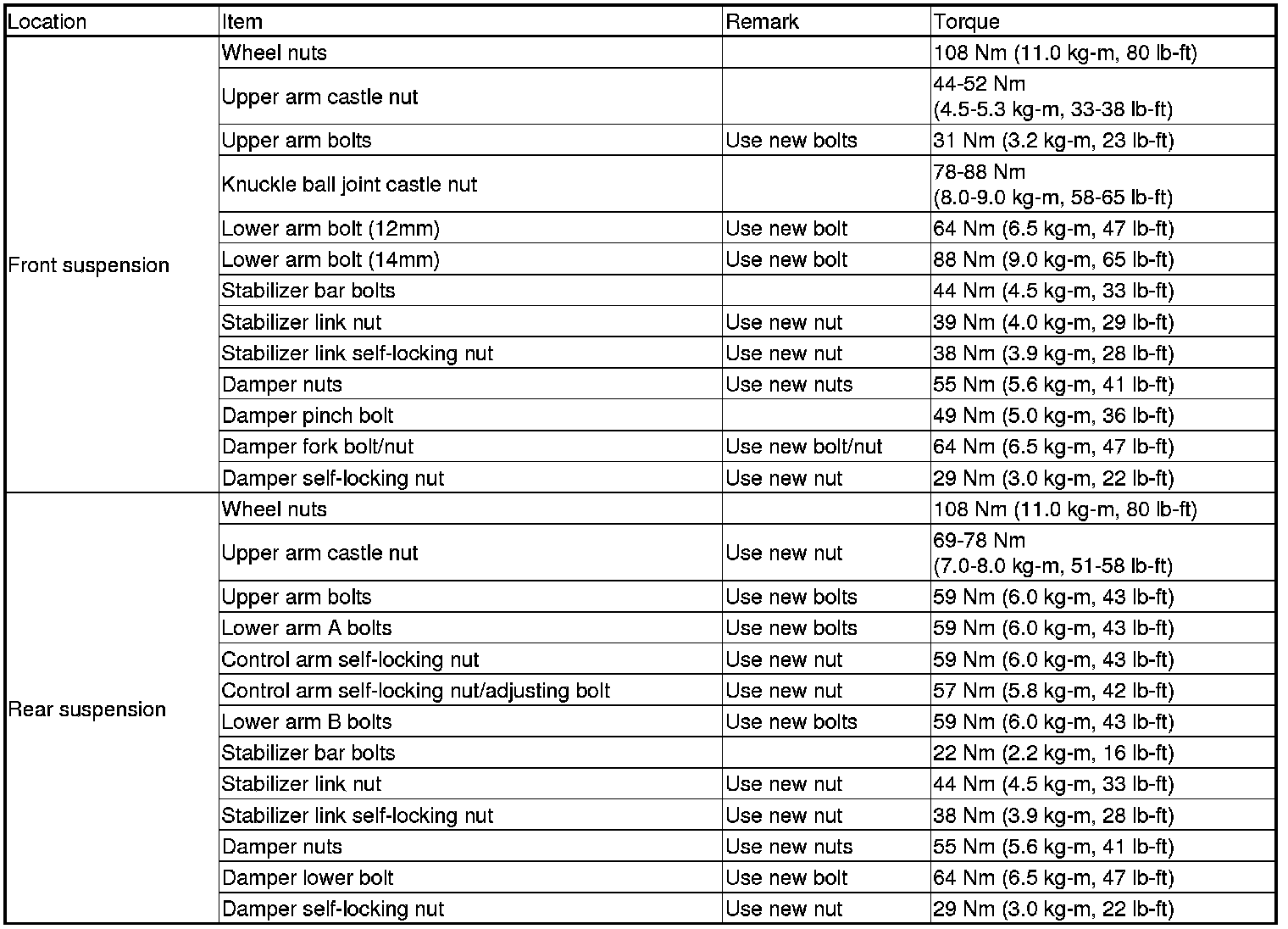 Torque Specifications