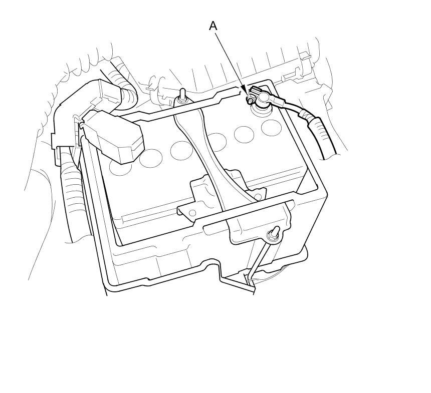 16. Disconnect the negative terminal (A) of the battery ground cable from the battery negative terminal.