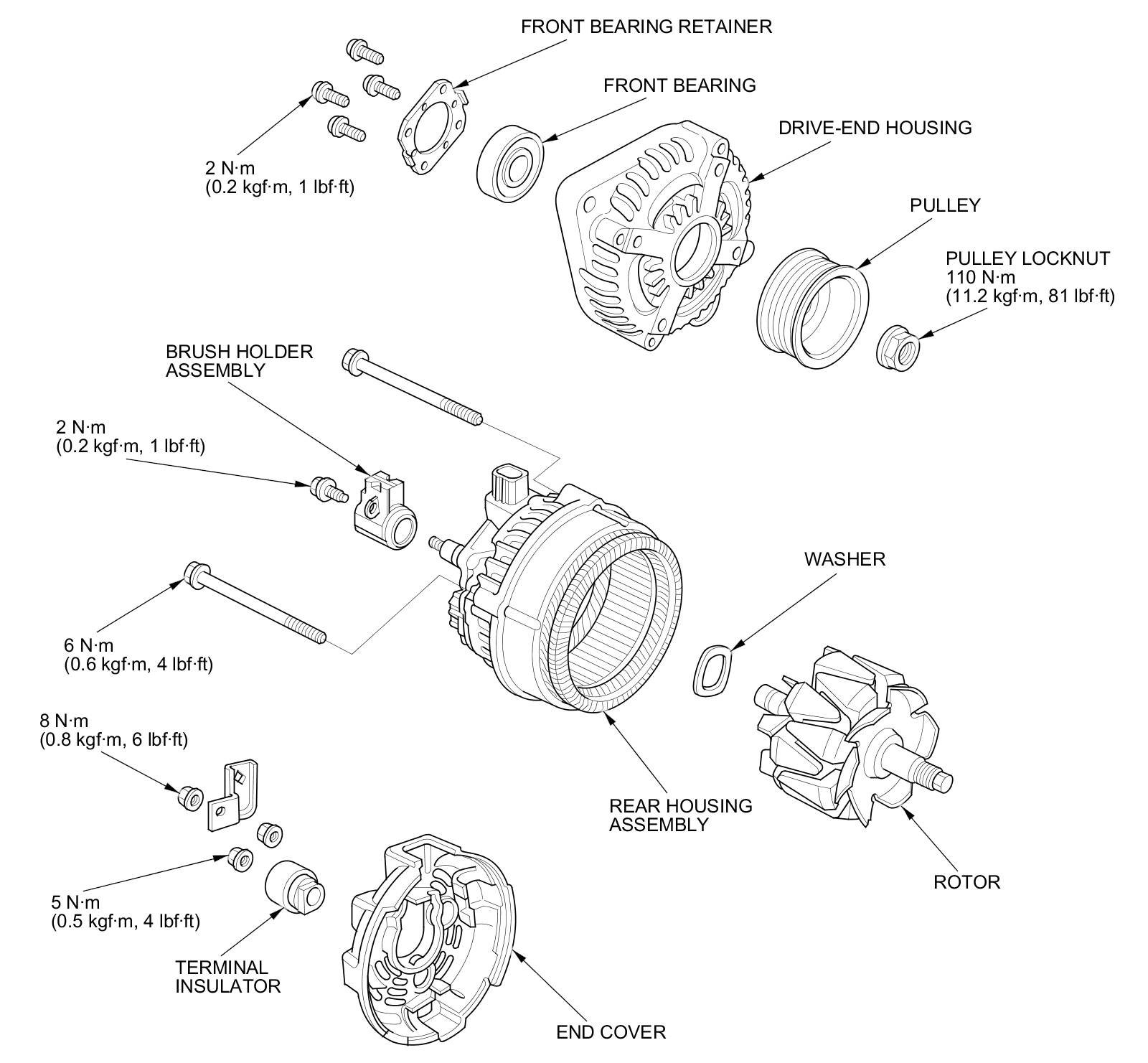 16. If you removed the pulley, put the rotor in the drive-end housing, then torque its locknut to 110 Nm (11.2 kg-m, 81 lb-ft).