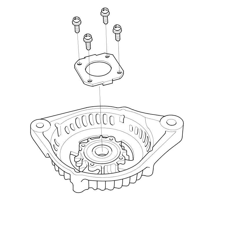 22. After assembling the alternator, turn the pulley by hand to make sure the rotor turns smoothly and without noise.