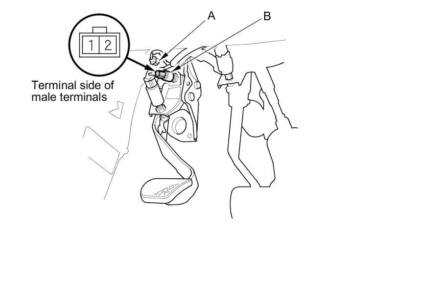 - If the continuity is not as specified, replace the clutch interlock switch (B) Clutch Interlock Switch Replacement, and adjust the pedal height Adjustments.