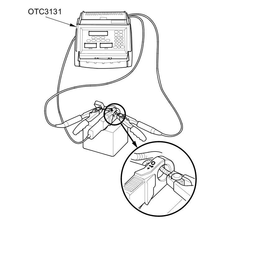 1. Connect the alternator, regulator, battery, and starter tester (OTC3131) to the battery as shown.