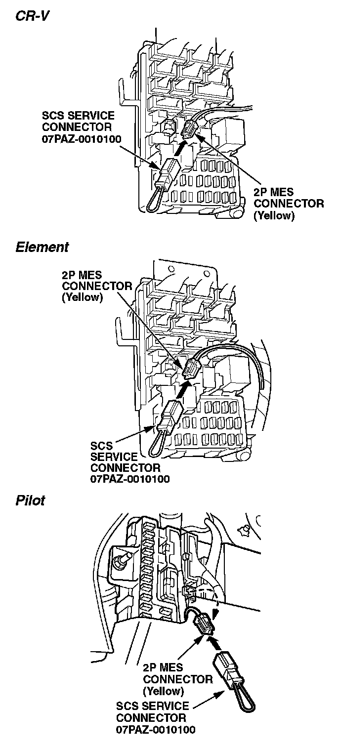 16. When the SRS indicator comes on again, plug the SCS service connector into the 2P MES connector within 4 seconds after the indicator comes on.
