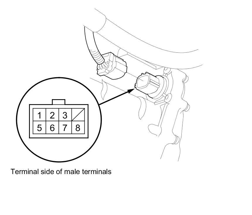 - If the resistance is within the standard, the test is complete, reconnect the connector, then install the front splash shield.
