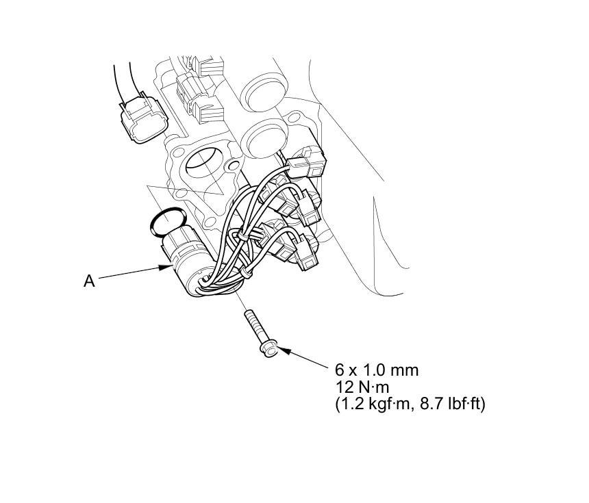 9. Remove the bolt securing the shift solenoid wire harness (A), then remove the shift solenoid wire harness from the transmission housing.