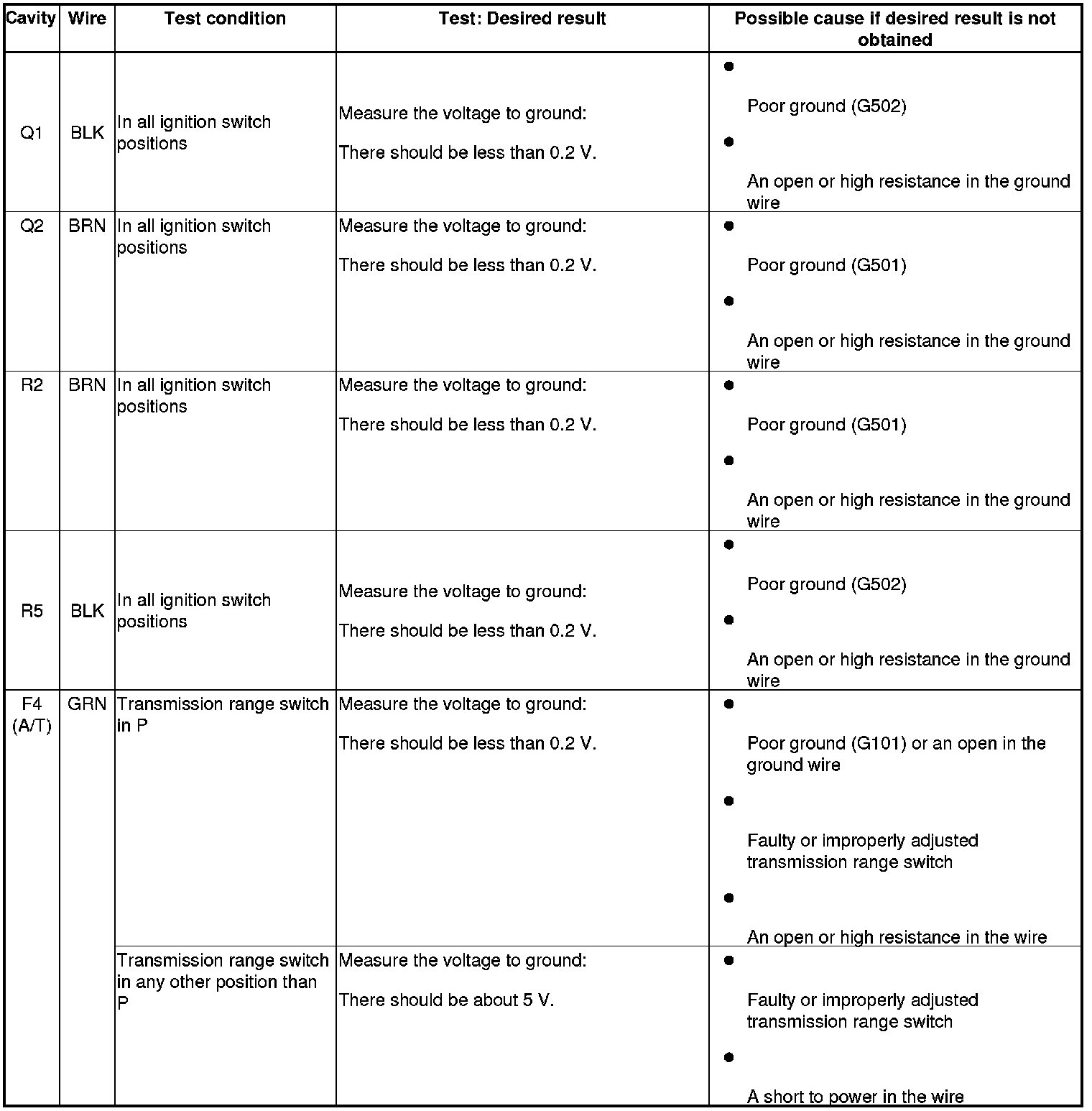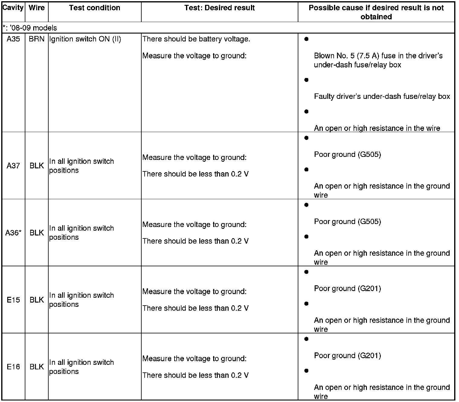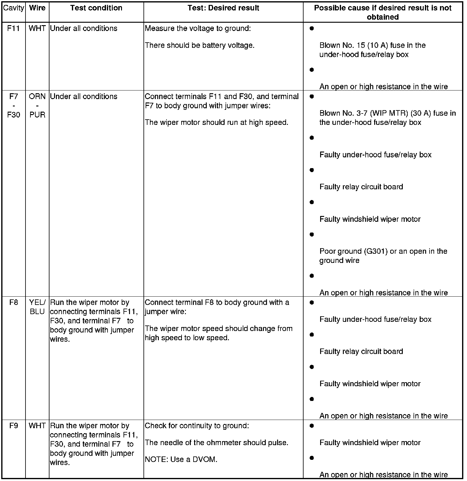 13. Reconnect the connectors to the passenger's under-dash fuse/relay box, and do the following input tests: