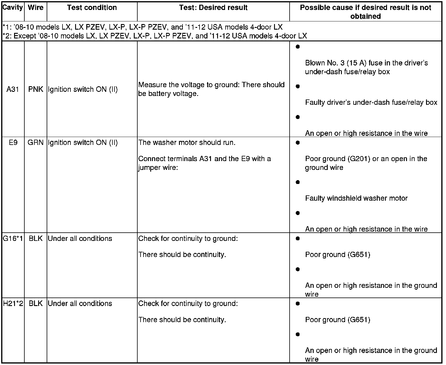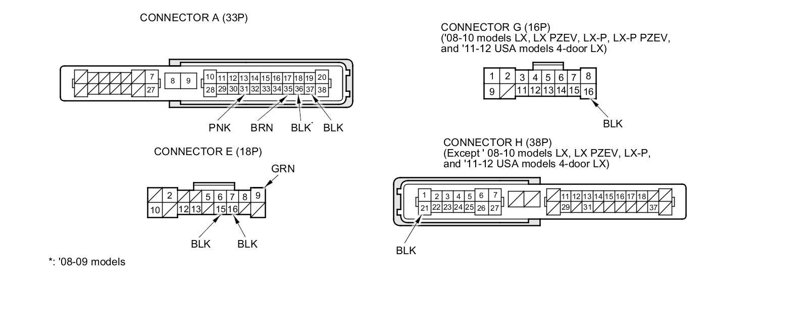 *1: '08-10 models LX, LX PZEV, LX-P, LX-P PZEV, and '11-12 USA models 4-door LX