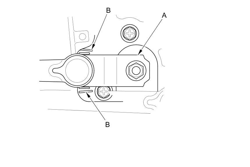 3. Install the link to the windshield wiper motor shaft, then align the mark (A) of the link and the mark (B) of the wiper linkage assembly (4-door), or align the link (A) and the mark (B) of the wiper linkage assembly (2-door).
