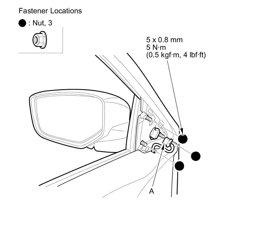 4. While holding the power mirror, remove the nuts securing the mirror.
