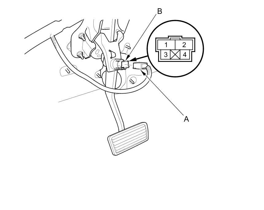 2. Disconnect the 4P connector (A) from the brake pedal position switch (B).