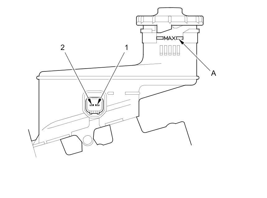 - Fill the reservoir with brake fluid to the MAX (upper) level (A). With the float up, there should be no continuity.