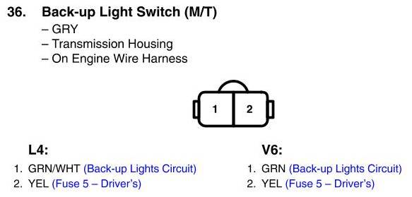 View 36 - Back-up Light Switch Connector View (M/T)