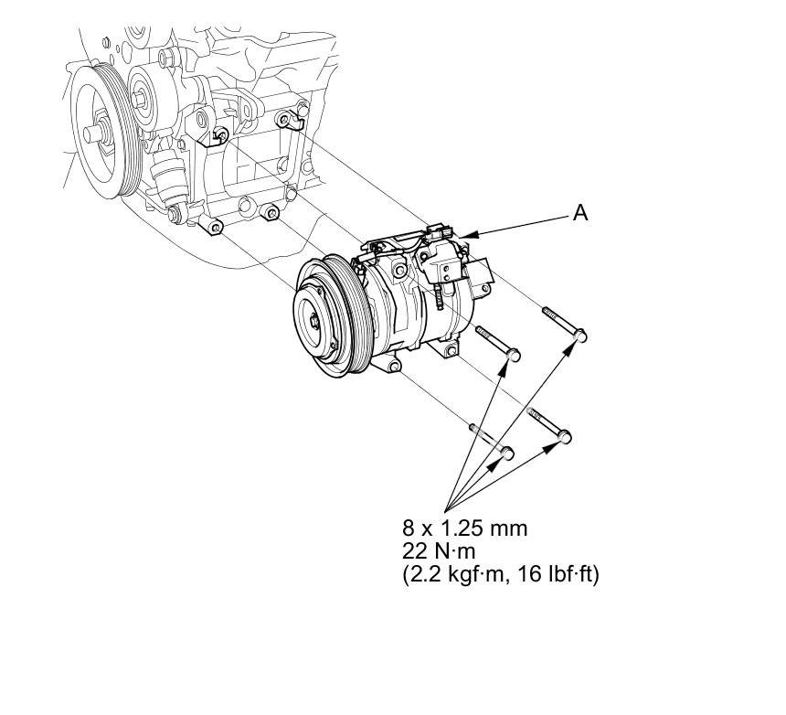 7. Install the A/C compressor in the reverse order of removal, and note these items: