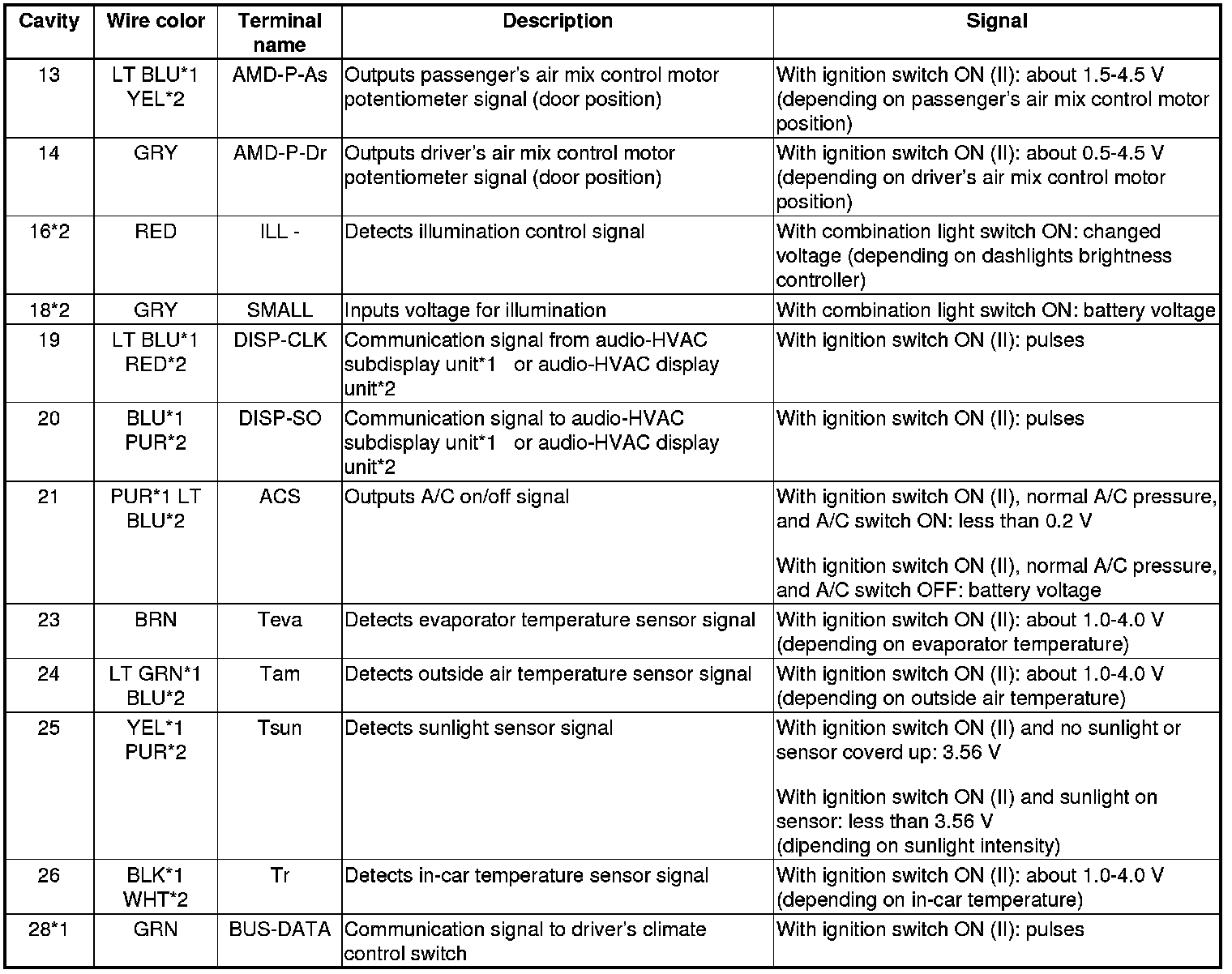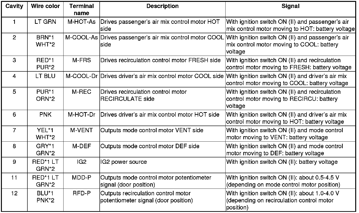 Climate Control Unit Inputs and Outputs (cont'd)