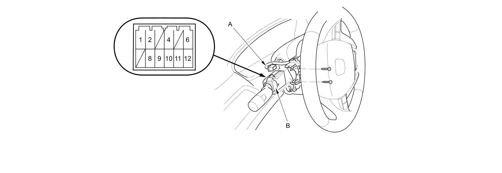 3. Disconnect the 12P connector (A) from the combination light switch (B).