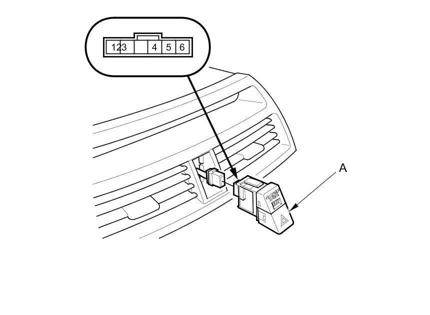 2. Remove the hazard warning switch (A).