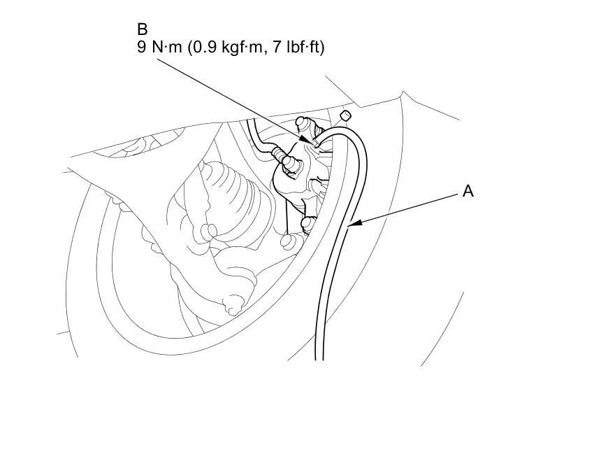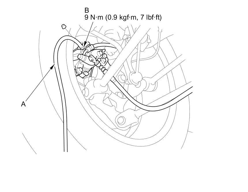 4. Attach a length of clear drain tube (A) to the bleed screw (B), then loosen the bleed screw to allow air to escape from the system. Then tighten the bleed screw securely.