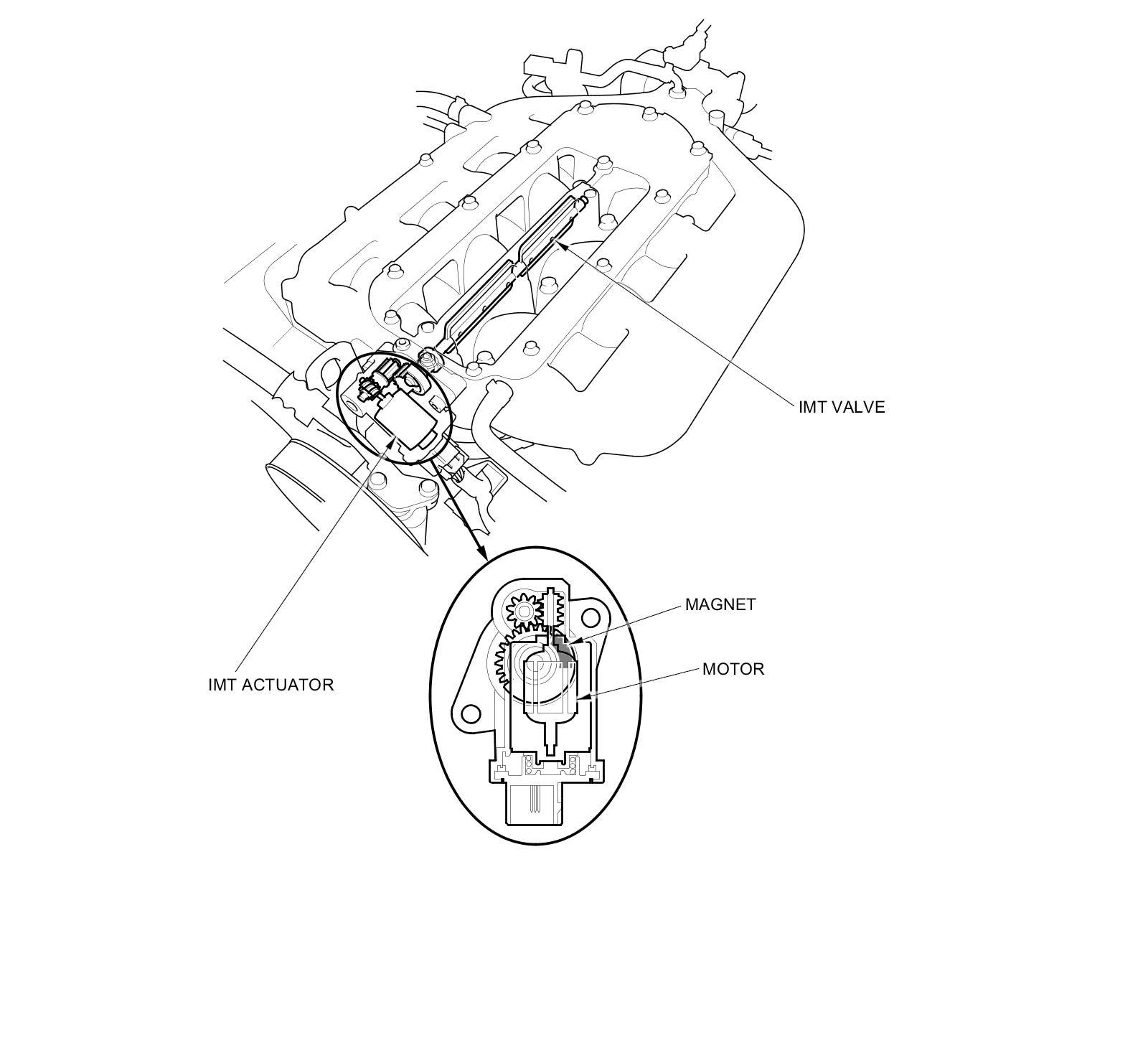 The IMT valve actuator has a sensor that detects the IMT valve position and sends it to the ECM.