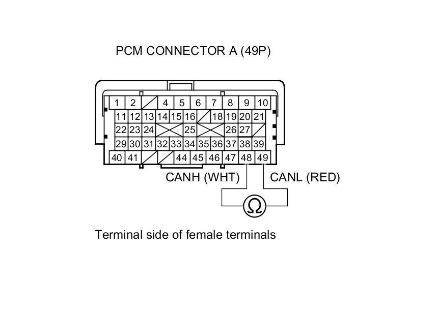 20. Measure the resistance between PCM connector terminals A48 and A49.