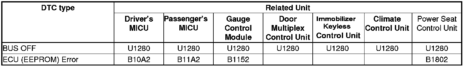Enter B-CAN System Diagnosis Test Mode 1. While in Test Mode 1, when communication between the MICU and gauge control module is normal, the DTCs that have been detected and stored individually by various B-CAN (Body-controller Area Network) units are shown one by one on the odo/trip display. To scroll through the DTCs, press the SEL/RESET button.