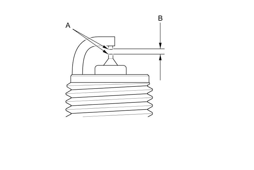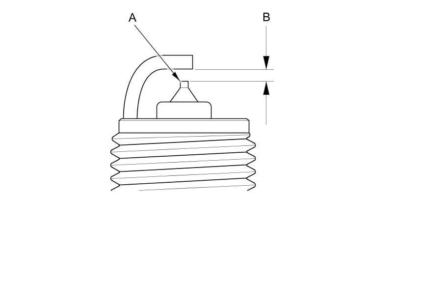 3. Replace the plug at the specified interval, or if the center electrode (A) is rounded, or if the spark plug gap (B) is out of specification, or if the spark plug electrode is dirty or contaminated. Use only the spark plugs listed.