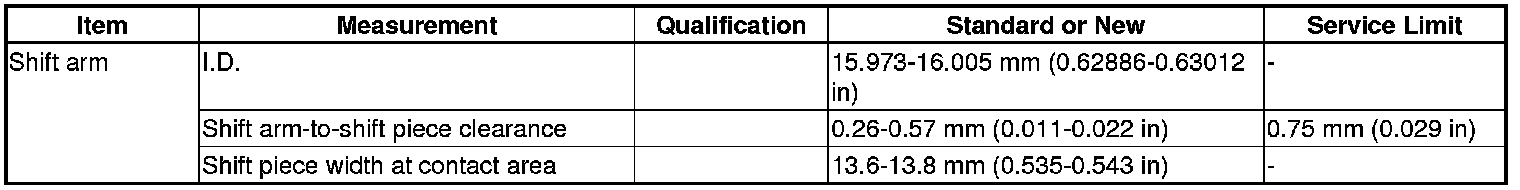 Shift Arm Specification(s) (M/T)