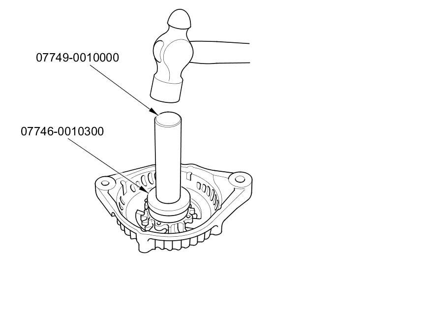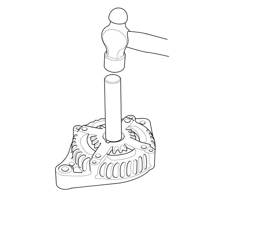 13. Install a new front bearing in the drive-end housing with a hammer, the driver handle, 15 x 135L, and the bearing driver attachment, 42 x 47 mm.