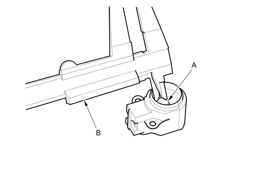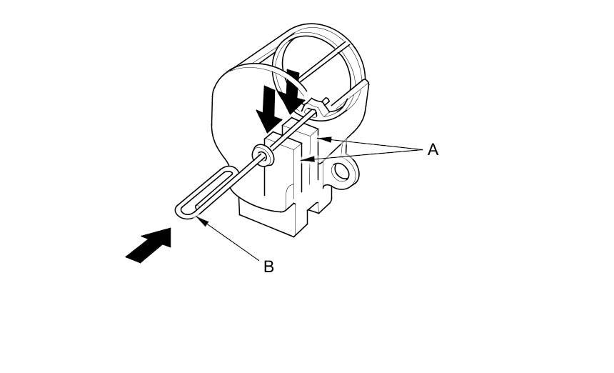 21. Push the brushes (A) in, then insert a pin or drill bit (B) (about 1.6 mm (1/16 in) diameter) to hold them there.
