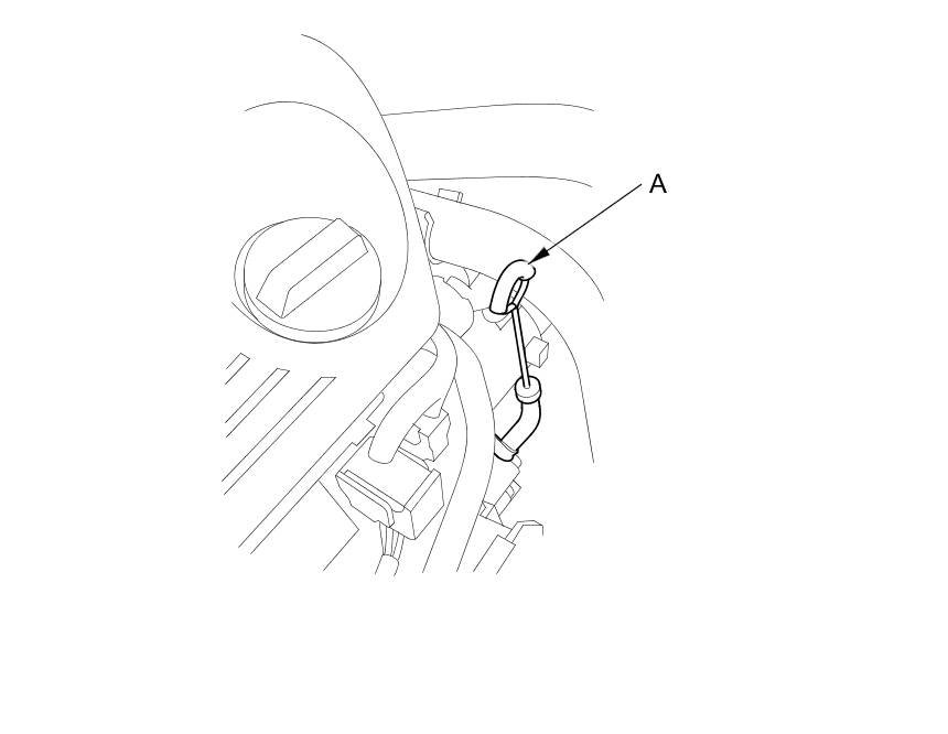 8. If necessary, fill the transmission with the recommended fluid through the filler hole (A) to bring the fluid level between the upper mark and the lower mark of the dipstick. Do not fill the fluid above the upper mark. Always use Honda ATF DW-1 Automatic Transmission Fluid (ATF). Using a non-Honda ATF can affect shift quality.