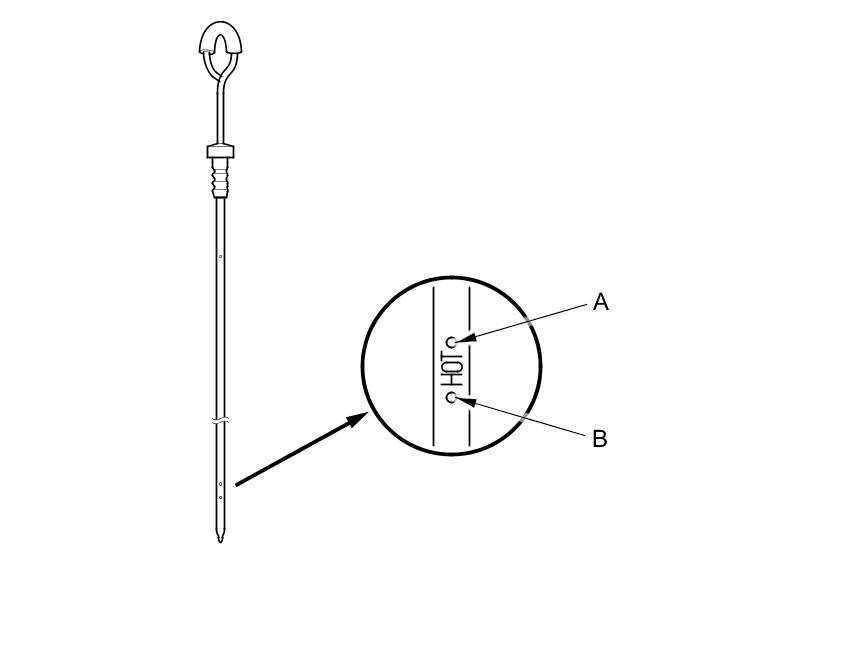 5. Remove the dipstick, and check the ATF level. It should be between the upper mark (A) and the lower mark (B).