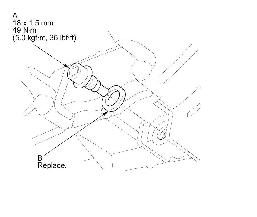 4. Reinstall the drain plug with a new sealing washer (B).