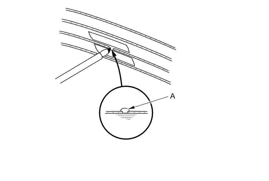 3. Using a small brush, apply a heavy coat of silver conductive paint (commercially available) (A) extending about 3.0 mm (0.1 in) on both sides of the break. Allow 25 minutes to dry.