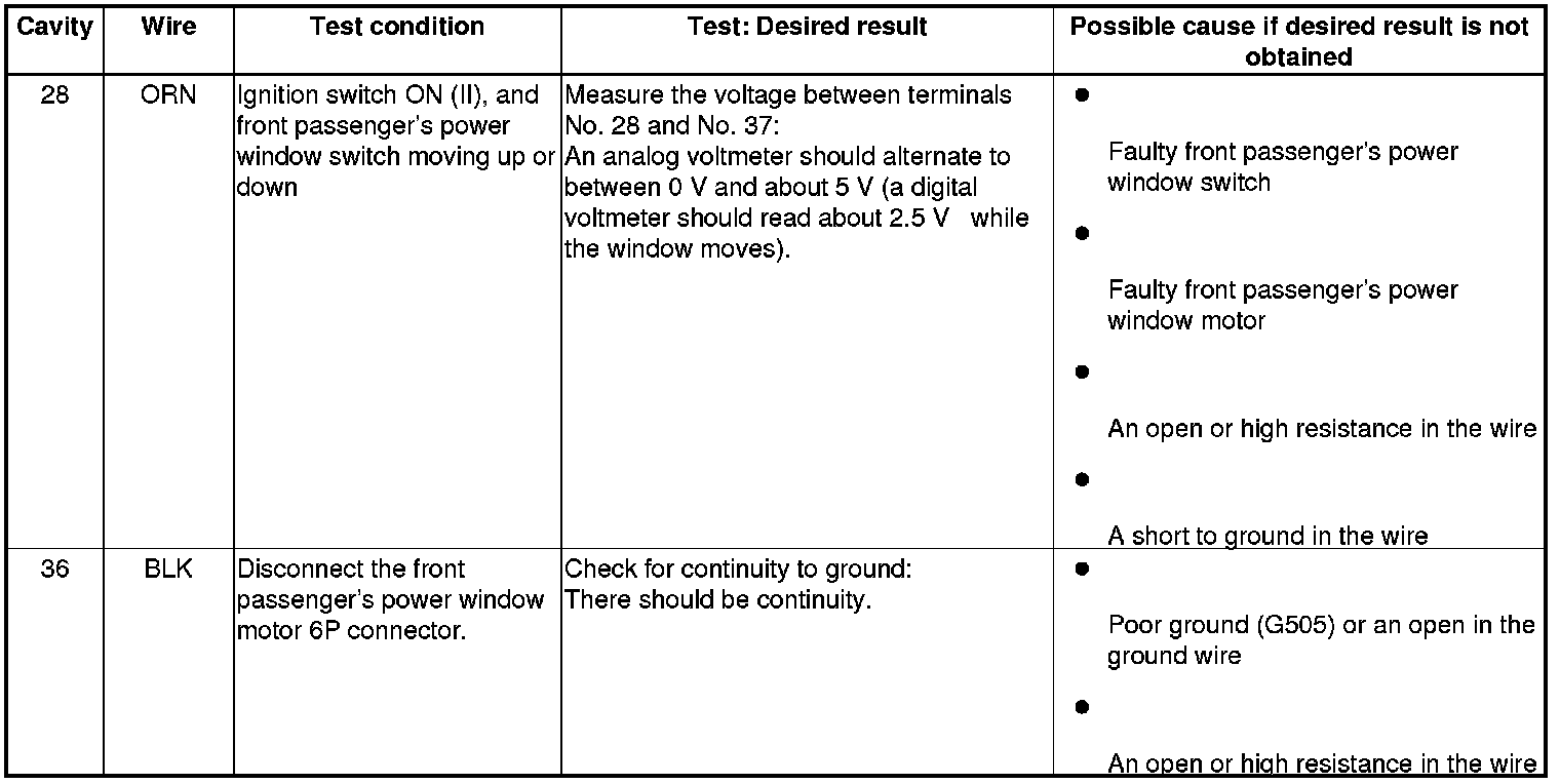 Front Passenger's Power Window Switch Input Test