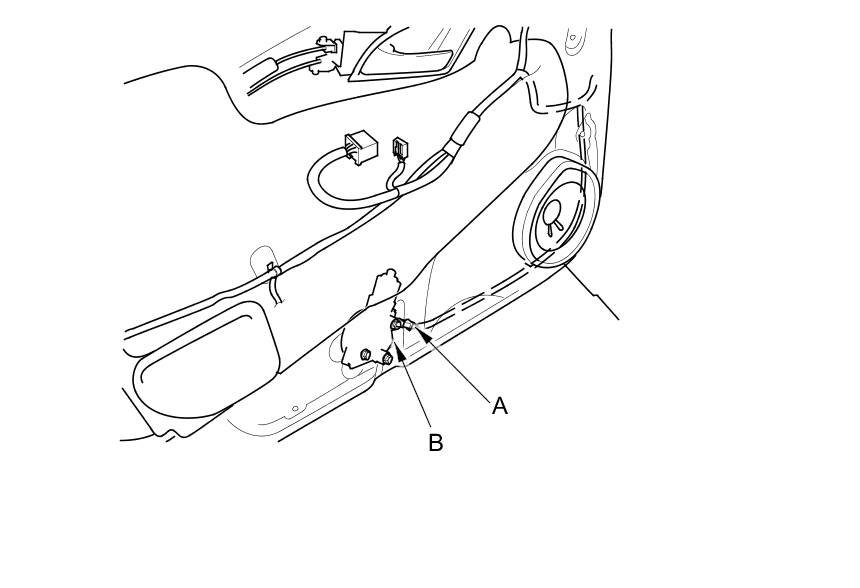 5. Disconnect the 6P connector (A) from the driver's power window motor (B).