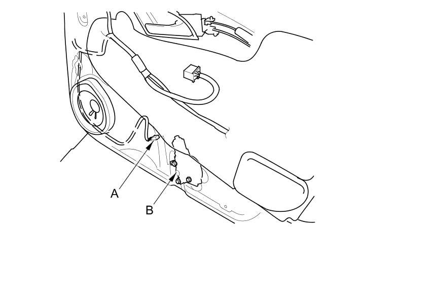 5. Disconnect the 6P connector (A) from the front passenger's power window motor (B).