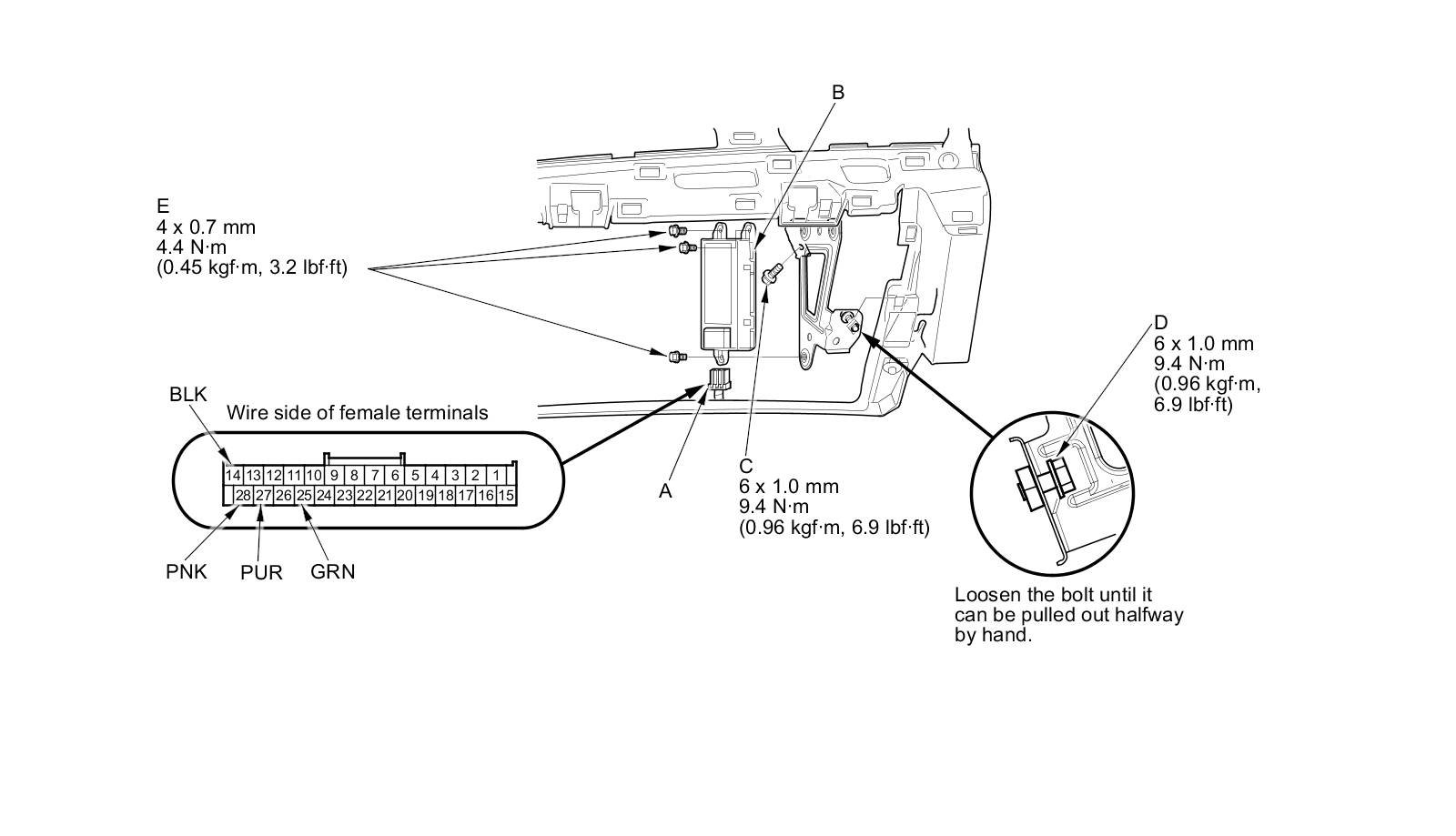 1. Remove the passenger's dashboard undercover Passenger's Dashboard Undercover Removal / Installation.