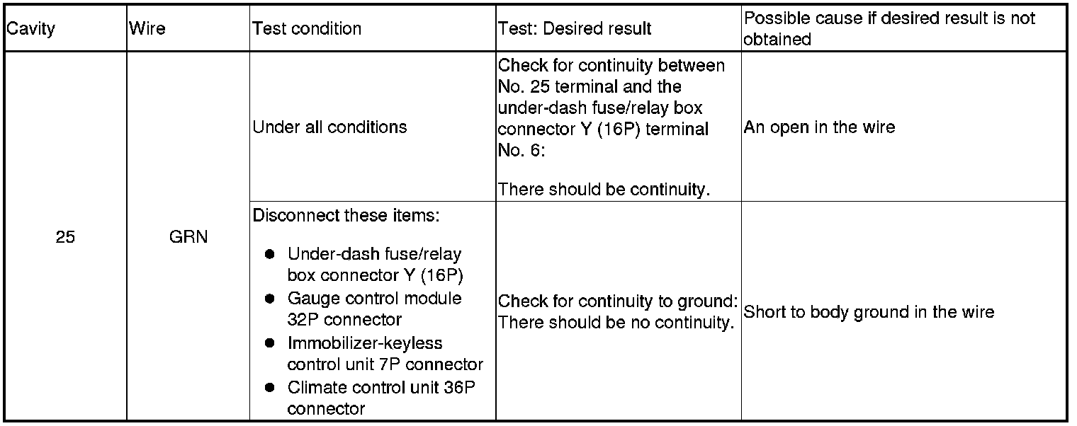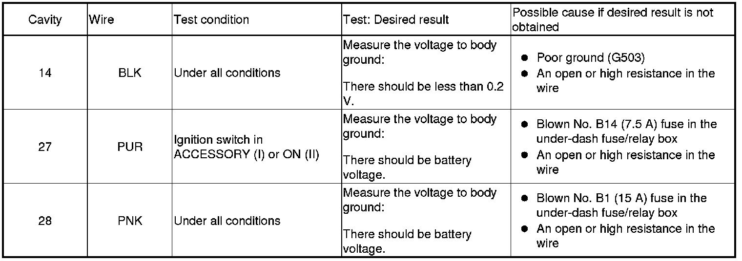 6. Reconnect the connector and make these input tests at the connector under the test conditions listed.