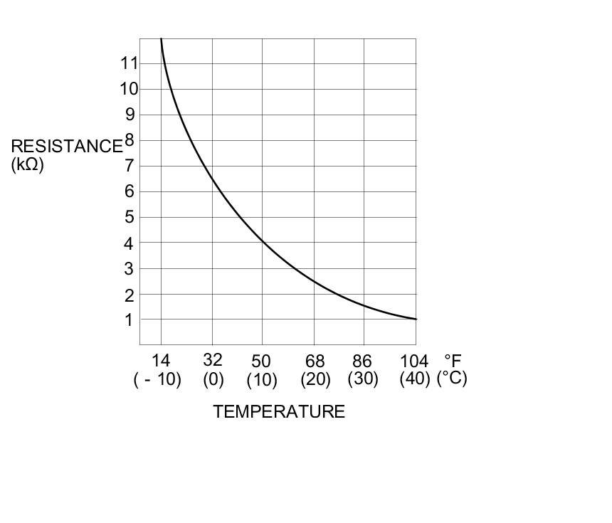 3. Compare the resistance reading between humidity/in-car temperature sensor terminals No. 3 and No. 4 with the specifications shown in the graph; the resistance should be within the specifications.
